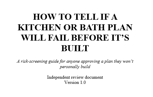 Independent kitchen and bath plan review focused on identifying structural risks prior to construction.